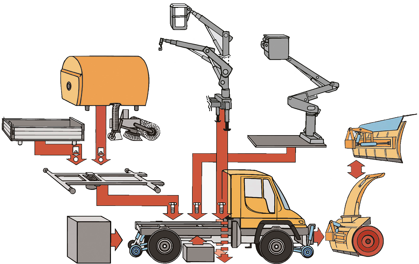 Ob Mercedes-Benz Unimog, LKW oder Transporter, viele Auf- und Anbaugerätehersteller